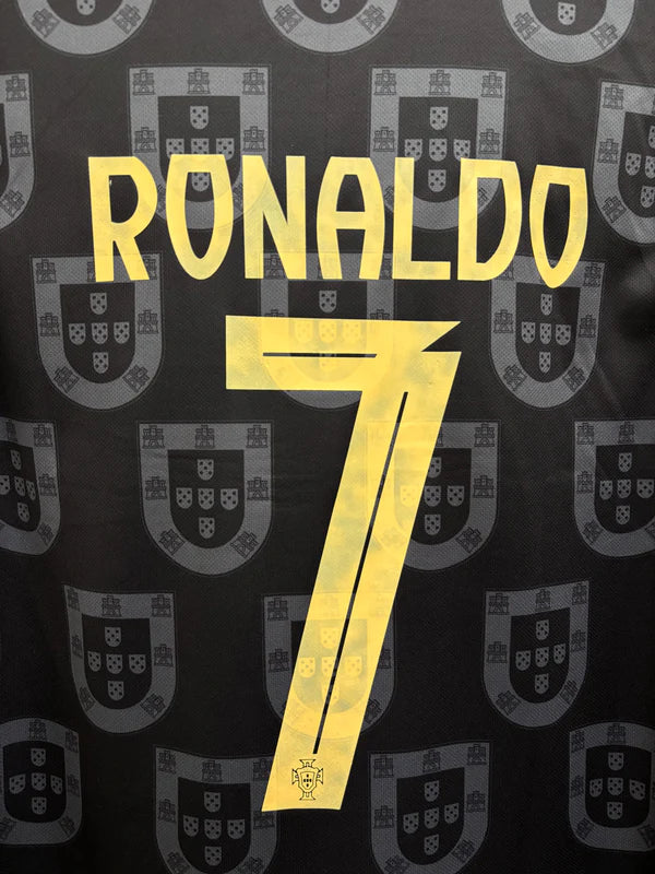 RONALDO 7 PORTUGAL BLACK SPECIAL EDITION SHIRT EMBROIDERED LOGOS